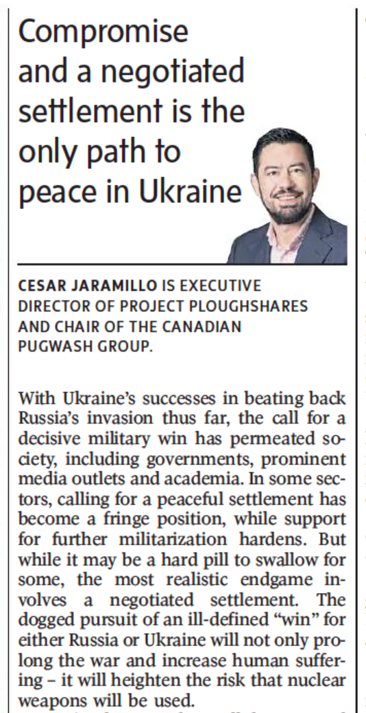 The Journal of Peace and Nuclear Disarmament has published Paul Meyer’s lecture at the November 2022 Canadians for a Nuclear Weapons Convention/Centre for International Policy Studies event in Ottawa:
